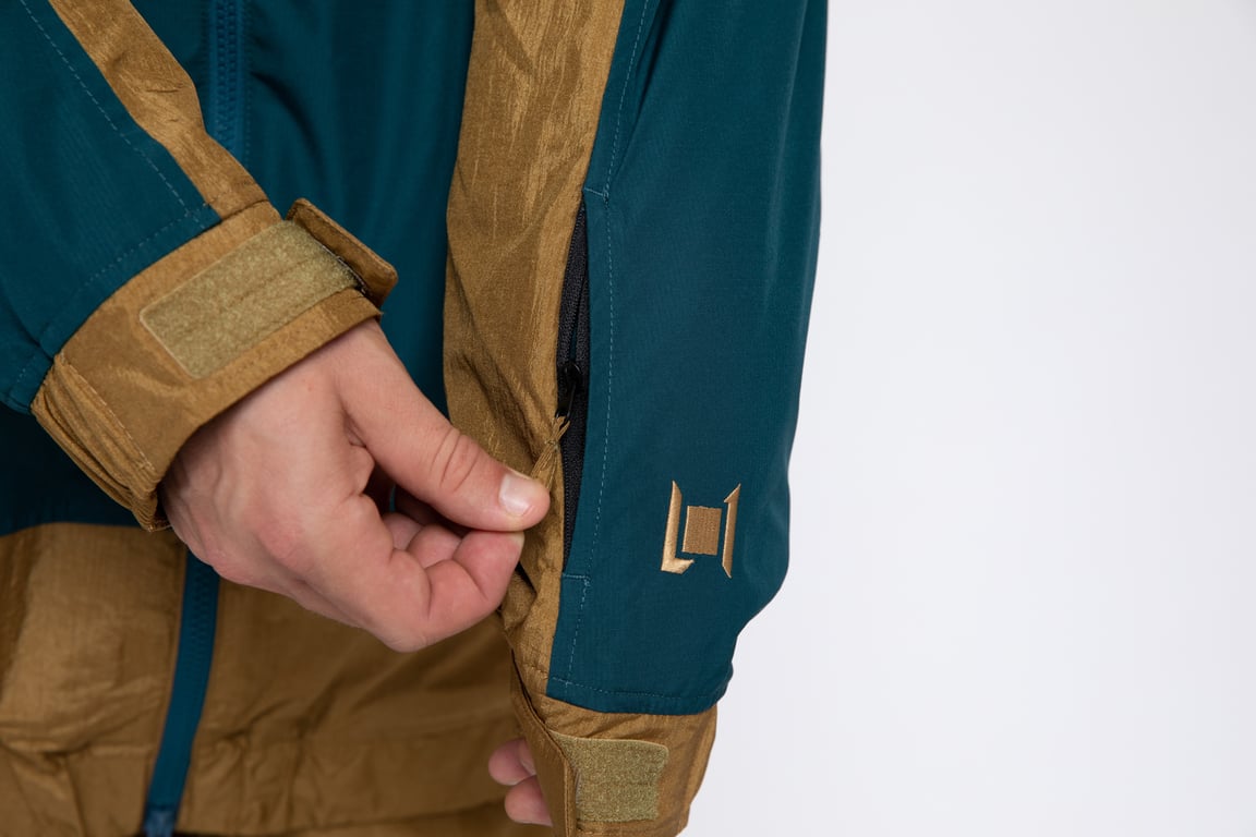 - Zip pass pocket in left sleeve hem